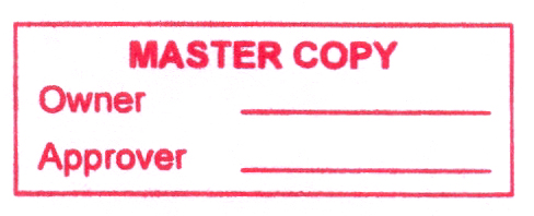 The stamp shall have text as “MASTER COPY” in the centre of the first row and space for initials of the Process Owner written as Owner and Technical Approver written as Approver.