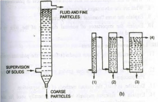 Nowadays in elutriation process, the particles are suspended in a moving fluid, generally water or air. The apparatus consists of a vertical column with an inlet near the bottom for suspension, an outlet at the base for coarse particles and an overflow near the top for fluid and fine articles. One column will give single separation into two fractions. If more than one fraction is required a number of tubes of increasing area of cross section can be connected in series. The velocity of the fluid decreases in succeeding tubes as the area of cross section increases, thus giving a number of fractions. These fractions are separated and dried.