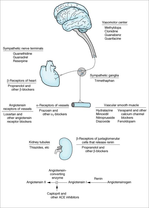 Adrenergic neuron blockers (Reserpine, Guanethidine, etc.), Ganglion blockers (Pentolinium, etc.)