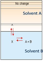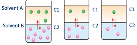 • When the distribution of the solute X has reached dynamic equilibrium, the rate (R1) at which molecules of X pass from solvent A to B is proportional to its concentration (C1) in A. The rate (R2) at which molecules of X pass from solvent B to A is proportional to its concentration (C2) in B.