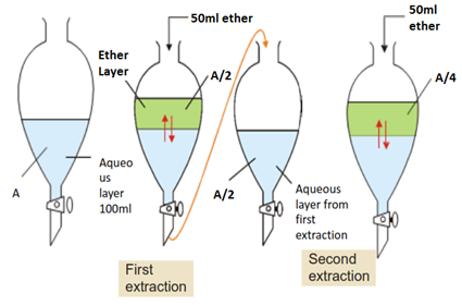 Thus 75 per cent of substance is extracted by using two 50 ml portions of the solvent as against 66 per cent when 100 ml solvent is used in one lot.