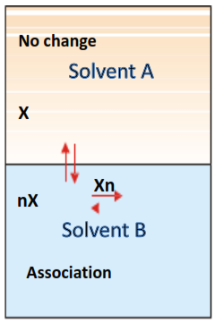 solvent A. In solvent B, n molecules of X associate to form Xn molecules. Assuming that a few single molecules X are